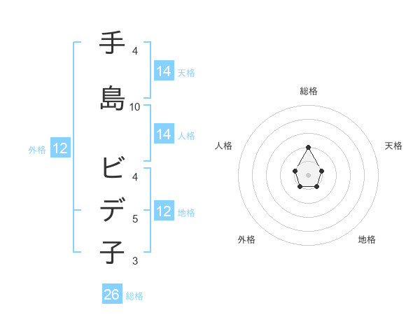 手島 ビデ子さんを姓名の画数から五運を鑑定