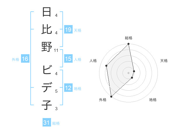 日比野 ビデ子さんを姓名の画数から五運を鑑定