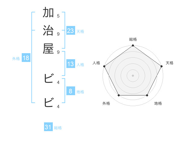 加治屋 ビビさんを姓名の画数から五運を鑑定