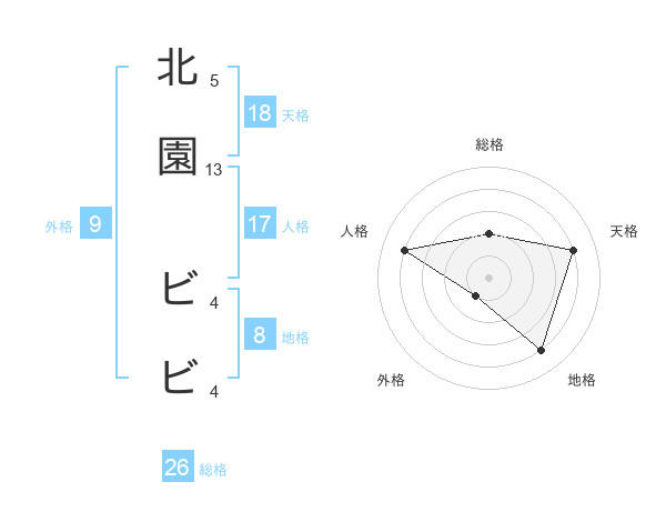 北園 ビビさんの天格は18画の4点!