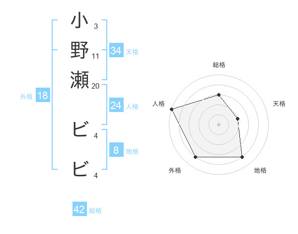 小野瀬 ビビさんを姓名の画数から五運を鑑定