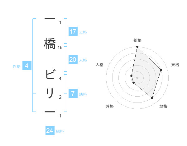 一橋 ビリーさんの総格は24画の5点!