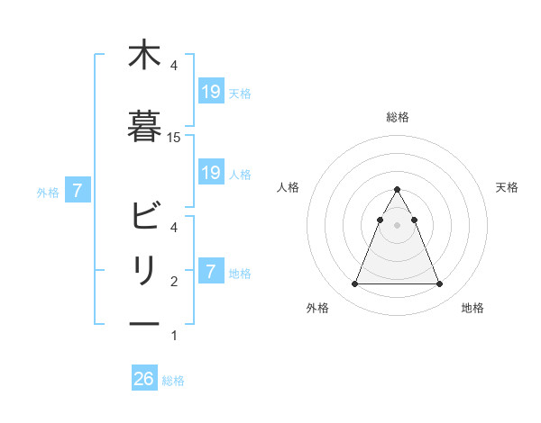木暮 ビリーさんの天格は19画の1点!