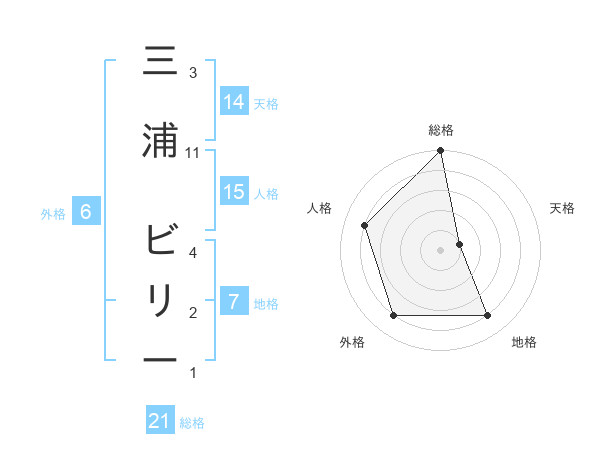 三浦 ビリーさんを姓名の画数から五運を鑑定