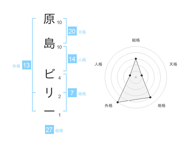 原島 ビリーさんを姓名の画数から五運を鑑定