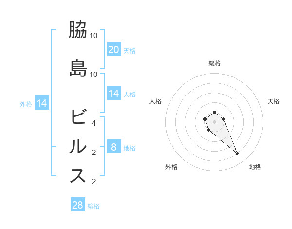 脇島 ビルスさんの総格は28画の1点!