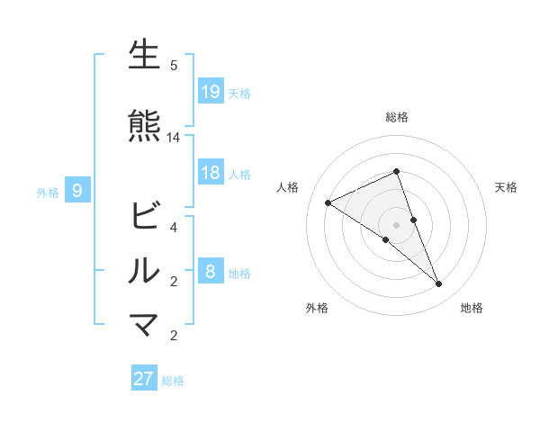 生熊 ビルマさんの総格は27画の3点