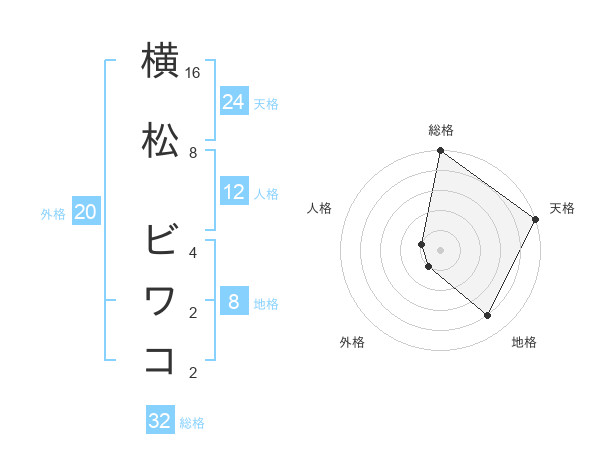 横松 ビワコさんを姓名の画数から五運を鑑定