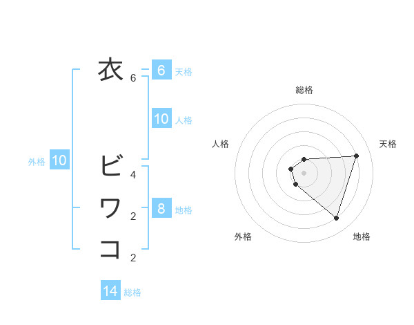 衣 ビワコさんの総格は14画の1点!