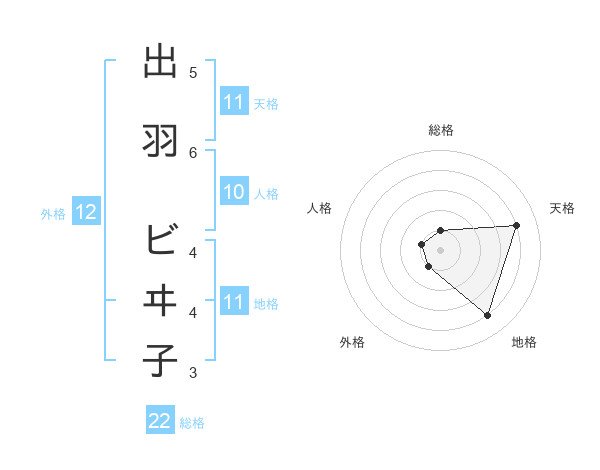 出羽 ビヰ子さんを姓名の画数から五運を鑑定