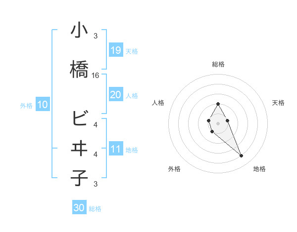小橋 ビヰ子さんを姓名の画数から五運を鑑定