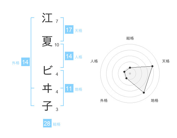 江夏 ビヰ子さんの天格は17画の4点!