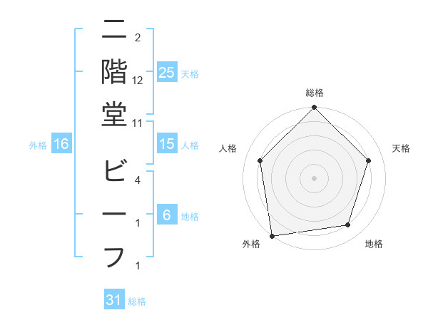 二階堂 ビーフさんを姓名の画数から五運を鑑定