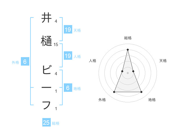 井樋 ビーフさんの地格は6画の4点!