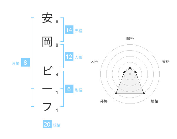 安岡 ビーフさんを姓名の画数から五運を鑑定