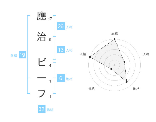 應治 ビーフさんの総格は32画の5点!