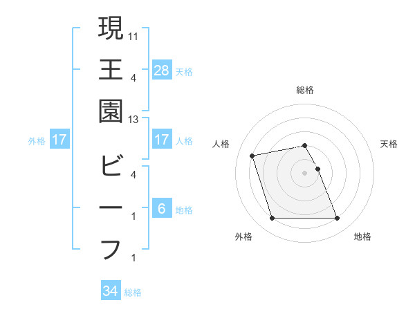 現王園 ビーフさんを姓名の画数から五運を鑑定