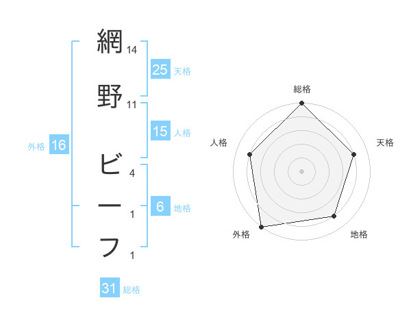 網野 ビーフさんの総格は31画の5点