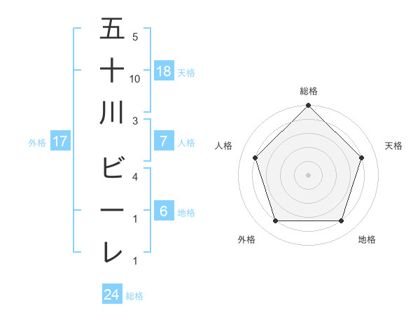 五十川 ビーレさんを姓名の画数から五運を鑑定
