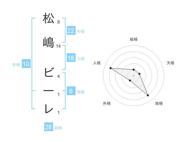 松嶋 ビーレさんを姓名の画数から五運を鑑定