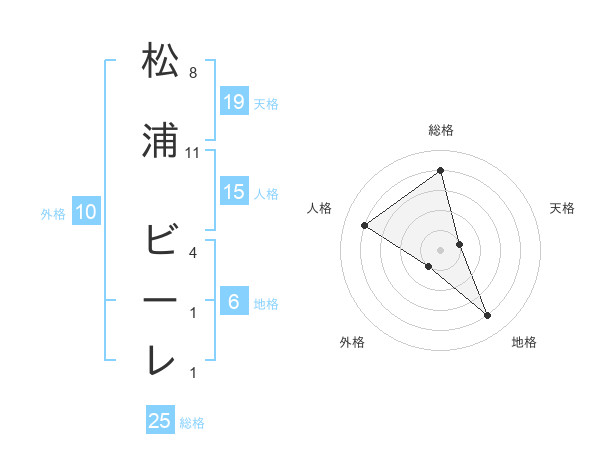 松浦 ビーレさんを姓名の画数から五運を鑑定