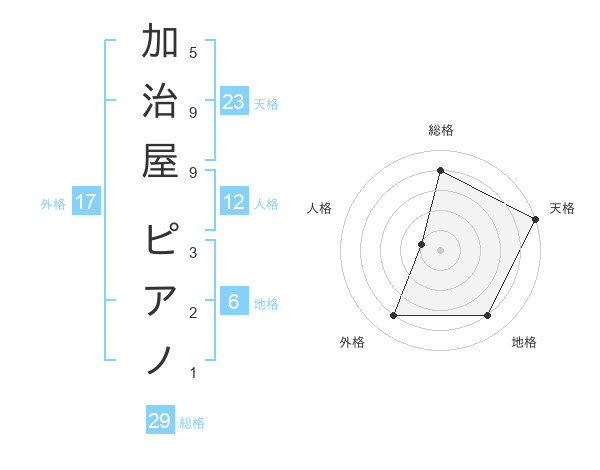 加治屋 ピアノさんを姓名の画数から五運を鑑定