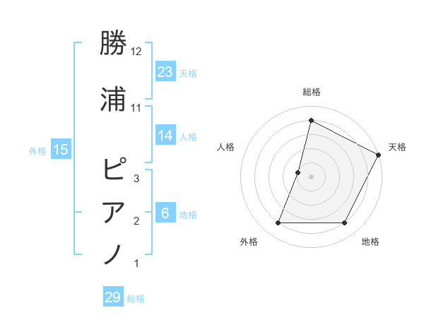 勝浦 ピアノさんを姓名の画数から五運を鑑定