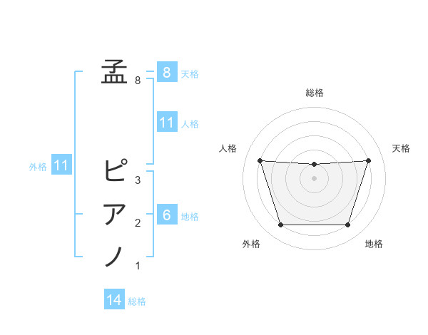 孟 ピアノさんを姓名の画数から五運を鑑定
