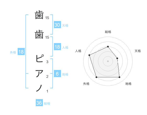 歯歯 ピアノさんを姓名の画数から五運を鑑定