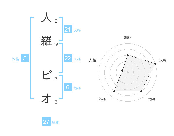 人羅 ピオさんを姓名の画数から五運を鑑定