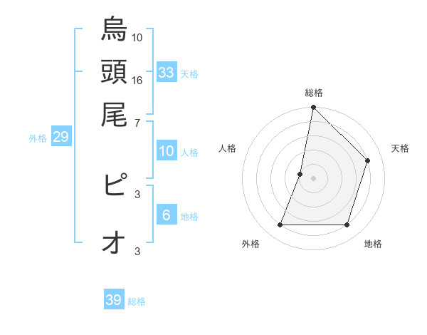 烏頭尾 ピオさんを姓名の画数から五運を鑑定