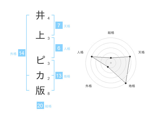 井上 ピカ版さんを姓名の画数から五運を鑑定