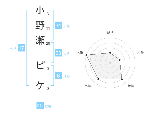 小野瀬 ピケさんを姓名の画数から五運を鑑定