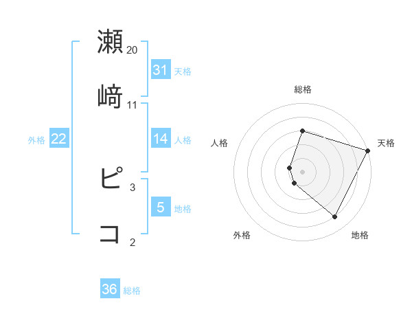 瀬﨑 ピコさんを姓名の画数から五運を鑑定