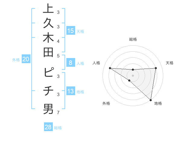 上久木田 ピチ男さんを姓名の画数から五運を鑑定