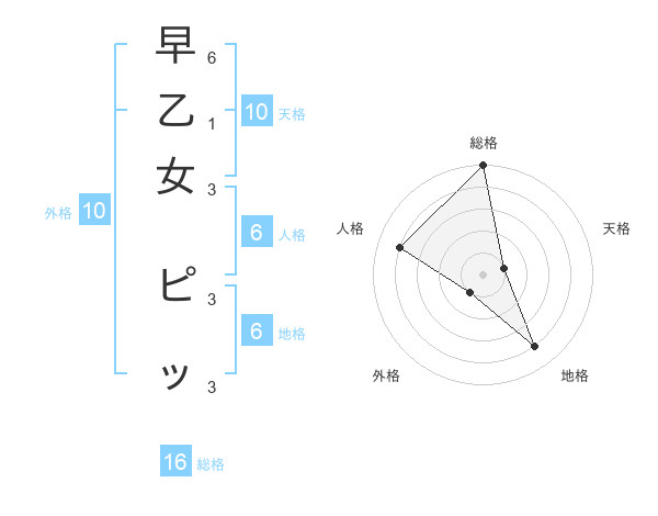 早乙女 ピッさんを姓名の画数から五運を鑑定