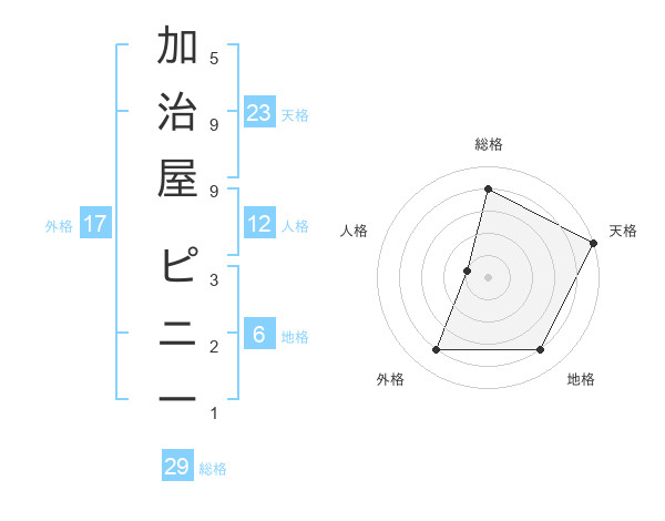 加治屋 ピニーさんを姓名の画数から五運を鑑定