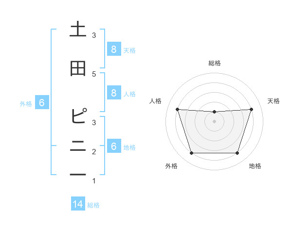 土田 ピニーさんの天格は8画の4点!