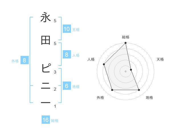 永田 ピニーさんを姓名の画数から五運を鑑定