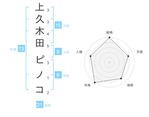 上久木田 ピノコさんを姓名の画数から五運を鑑定