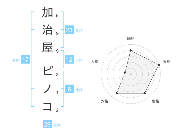 加治屋 ピノコさんを姓名の画数から五運を鑑定