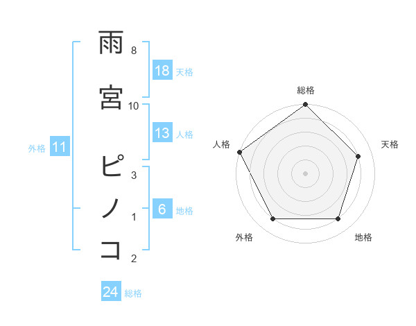雨宮 ピノコさんを姓名の画数から五運を鑑定