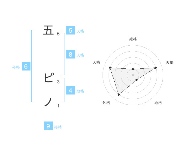 五 ピノさんの総格は9画の1点!