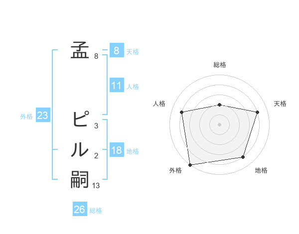 孟 ピル嗣さんの外格は23画の5点!