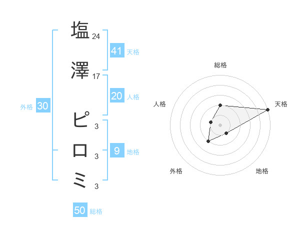 塩澤 ピロミさんの総格は50画の2点!