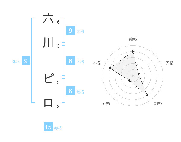 六川 ピロさんの総格は15画の4点!