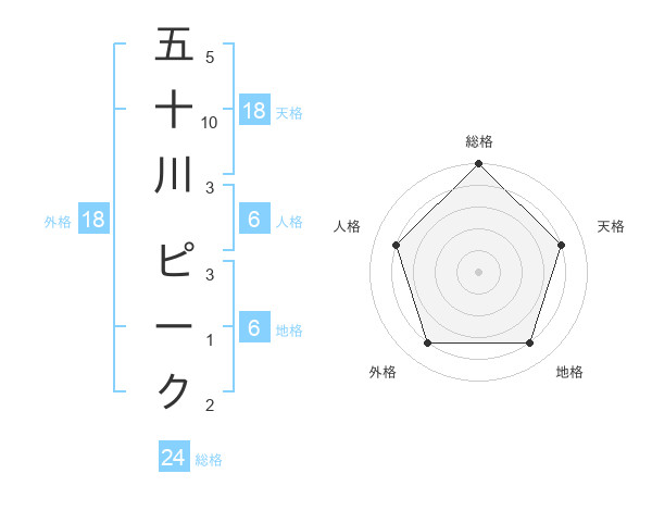 五十川 ピークさんを姓名の画数から五運を鑑定