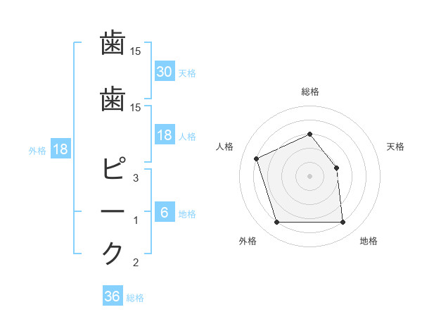 歯歯 ピークさんの総格は36画の3点!