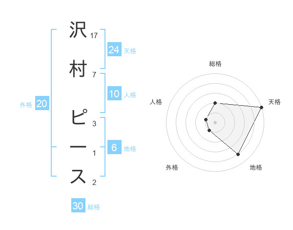 沢村 ピースさんの天格は24画の5点!