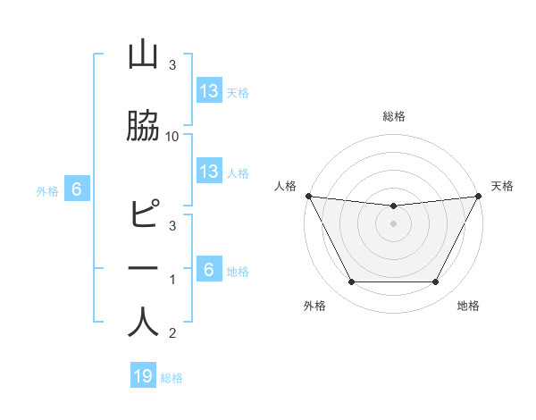 山脇 ピー人さんの天格は13画の5点!